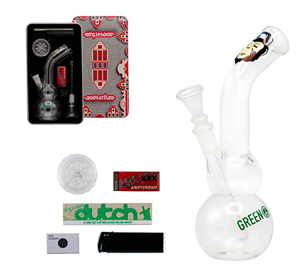 Wat het ook altijd goed doet als cadeau voor hem voor kerst, zijn de complete cadeauboxen. Dit zijn leuke kant en klare sets met bijvoorbeeld bong, pijp, lange vloei en grinder. Natuurlijk kan je ook zelf een mooi cadeau samenstellen, maar deze sets worden geleverd in een mooie verpakking. Niet alleen leuk om als kerstcadeau te te geven, maar ook handig om de artikelen op te bergen en te bewaren. Bijvoorbeeld de Greenline A-dam Monkey Giftset - 6 delige Cadeaubox of de Four Twenty Rasta Saxo Bong Giftset - 6 Delige cadeaubox.